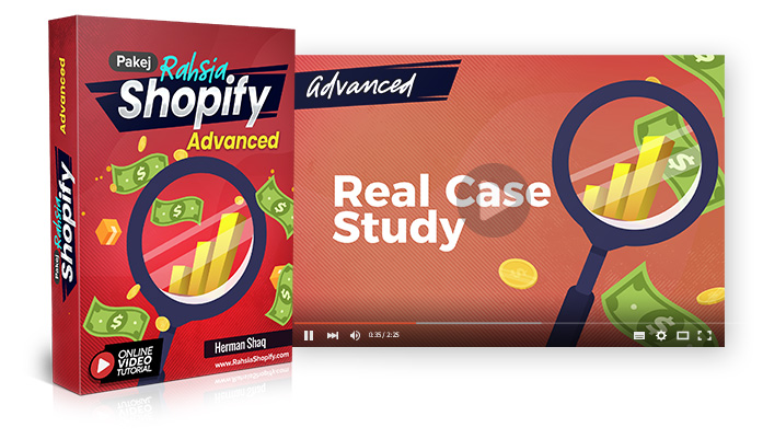 Dalam pakej Rahsia Shopify Advanced ni, anda akan mendapat tambahan 9 video lagi, di mana saya demokan semua proses yang saya lakukan secara "Real Case" untuk research, set up store, run ads dan buat sales sehingga mencapai 2000 USD!